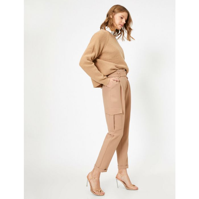 Pantalon taille moyenne, poche détaillée, ceinture détaillée
